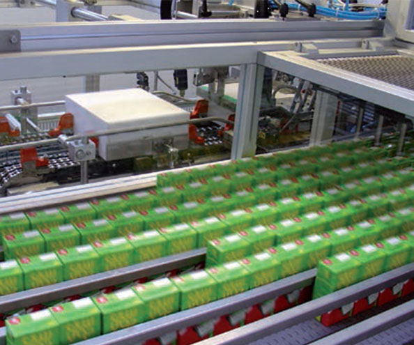 該機型廣泛應用于飲料、乳品和食品行業(yè),全自動(dòng)化二次包裝瓶裝和聽(tīng)裝產(chǎn)品,大幅提高生產(chǎn)效率及節約包裝成本。